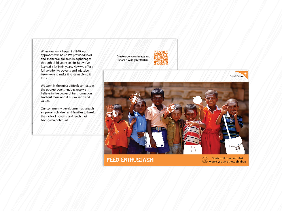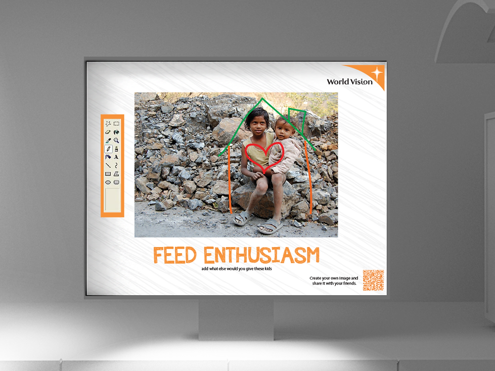 Media: Magazine scratch-offs (connects to app); Every Door Mail; QR Code to Donation App + Image maker; Interactive billboard: draw your own images (connects to app).